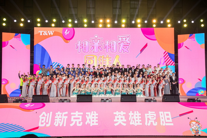 唱响青春旋律,牢记发展使命。表彰环节结束后,“相亲相爱同维人”文艺汇演在动感绚丽的灯光秀中拉开了序幕。太仓同维合唱团带来的合唱《祖国颂》、《相亲相爱一家》,奏响了“爱国心、同维情”的颂歌。笑点十足且发人深省的原创小品《减肥帮》,深情讲述同维发展和变化的朗诵《致共进三十一年》等原创节目,以及带着对未来美好祝愿的歌伴舞《我们的新时代》,无论是在表演形式还是内容上均可圈可点,获得了员工一致好评。